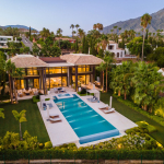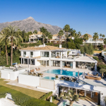 Luxury Villa in Marbella brand new, with sauna, sea views, Cinema room, Gym, games room, great plot…Stunning modern Mediterranean luxury villa on the Golden Mile, offering easy access to Marbella centre and 2 minutes’ drive from Puerto Banús. The property is built to the highest specifications with great attention to detail and using top quality materials and installations. The villa is distributed over 2 levels. Ground floor level offers a great entertainment area with TV/cinema room (with unique high tech Alcons system), wine cellar, bar, 3-4 bedrooms, all with wardrobes and en-suite bathrooms, office, gym, sauna and nice size staff / guest bedroom with en-suite bathroom and also a laundry room, guest WC and utility room. First level comprises open one master bedroom with en-suite bathroom, one bedroom with wardrobes and en-suite bathroom, spacious lounge with dining area and open plan kitchen with Gaggenau appliances, a guest WC, direct access to the covered and uncovered terraces, with several chill-out areas leading to the private pool. Also, a covered outdoor bar, ideal for outdoor entertaining. It includes a chill-out area, bathroom and storage. Full villa equipped with Void Music system. Truly one of the most exceptional homes as per its fantastic elevated plot, high qualities, cutting-edge architecture and a prime unbeatable location.